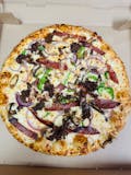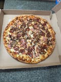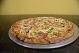 Peppers, mushrooms, onions, ham, pepperoni, sausage, beef & bacon.